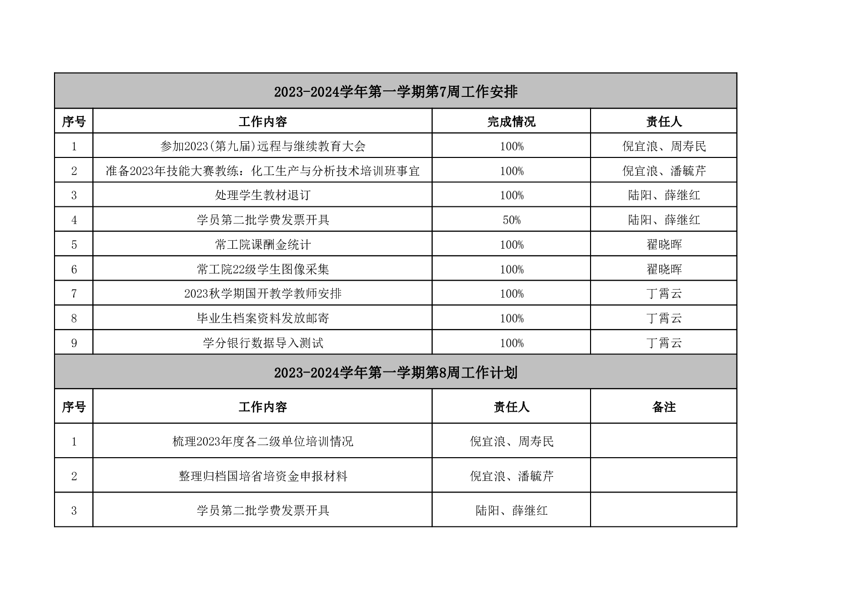 2023-2024学年第一学期第8周工作安排