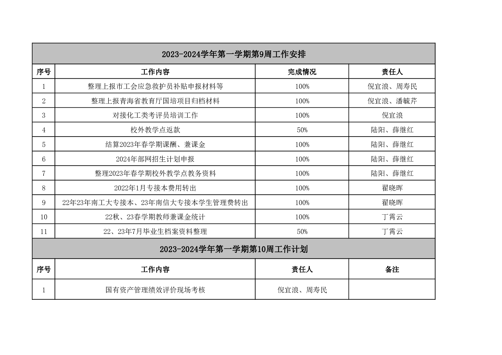 2023-2024学年第一学期第10周工作安排