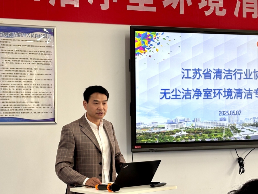 5月7日,beat365官网与江苏省清洁服务行业协会共同主办的全国首期无尘洁净室环境清洁专项技能培训在beat365官网开班。江苏省总工会副主任苗建东、江苏清协会长孙小军、秘书长关承洋,学校党委委员、副校长张雪华、beat365平台官方网站院长李旭海、副院长吴亚伟出席开班仪式。全省近30家企业的负责人参与培训,开班仪式由吴亚伟主持。