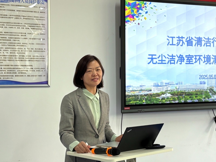 本次培训课程注重“理论+实践”双轮驱动。理论环节由化工与制药工程学院翁智兵教授主讲,聚焦无尘洁净室环境指标、验收标准及行业痛点,为学员构建系统化知识框架;实操环节由江苏清协成员单位特聘讲师赵建忠现场演示清洁规范流程与质量控制要点,通过沉浸式教学帮助学员掌握核心技术。