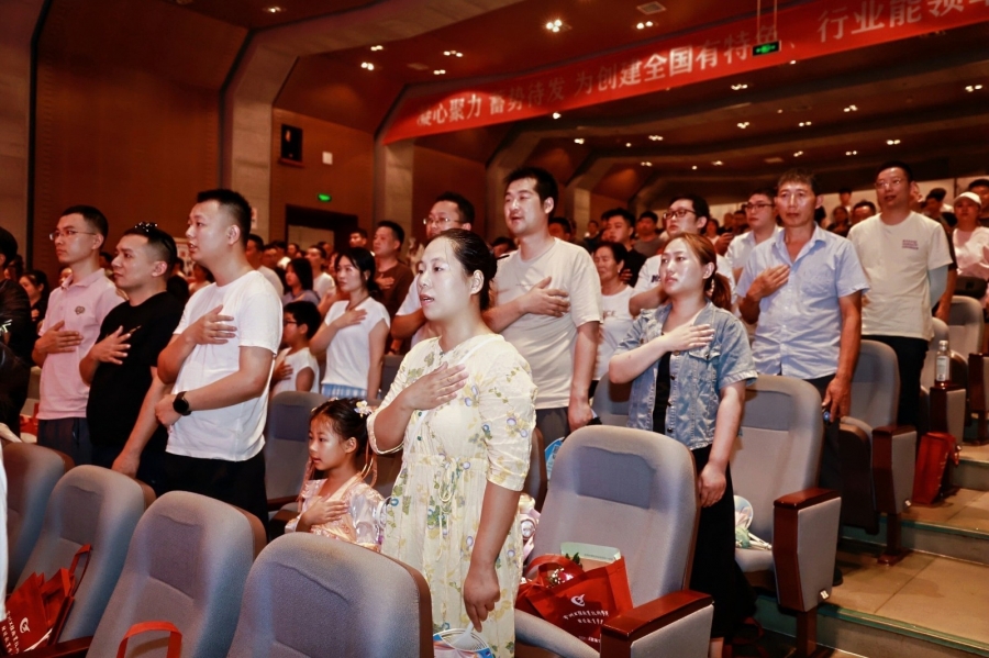 典礼在庄严的国歌声中拉开帷幕。全体师生起立,奏唱中华人民共和国国歌。