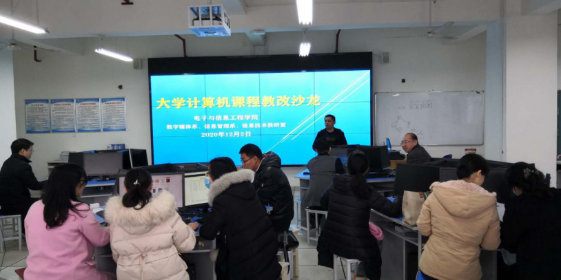 为了提高大学计算机基础课程的教学水平,进一步推进我校学生信息技术技能和素养,培养学生计算思维能力,2020年12月2日下午,yl6809永利官网在逸夫科技楼A501召开以“夯实课程内容体系 探索教学模式改革 培养计算思维能力”为主题的大学计算机课程教改沙龙,信息技术教研室全体老师以及数字媒体系、信息管理系承担大学计算机基础课程教学的教师的参加了此次活动,学院副院长王克刚教授参加活动并就高校教学改革思路与方法做了专题讲座。