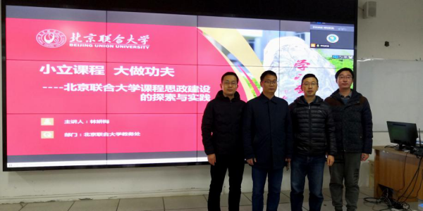 为了推动我院《创新思维》、《互联网+》、《现代教育技术》三门“课程思政”示范课建设,2020年12月13日,yl6809永利官网组织三个“课程思政”示范课建设项目组成员在科技楼A501参加了由北京联合大学组织举办的“‘小立课程大做功夫’——课程思政实践及案例分享直播会”,培训会为期1天。