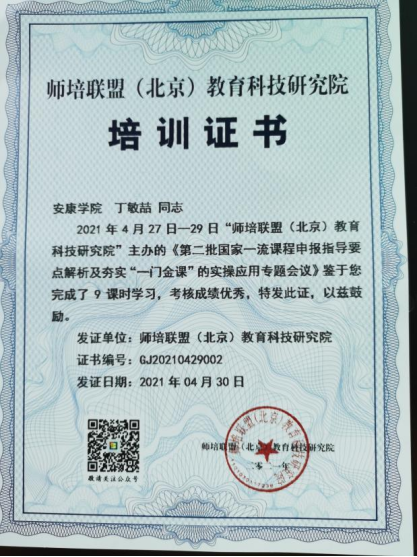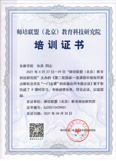 4月27日至4月29日,由师培联盟(北京)教育科技研究院主办的第二批国家一流课程申报指导专题会议在线上举行,yl6809永利官网派电子系教师朱燕和计算机系教师丁敏喆参加了本次会议。