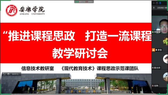 会议伊始,李宝介绍《教育部关于一流本科课程建设的实施意见》、《yl6809永利官网一流课程建设实施意见》等文件内容。随后,《现代教育技术》课程思政示范课负责人宋权华对课程目前建设情况作了简要介绍,并对课程下一步建设的计划和具体工作进行安排部署。同时,结合参加陕西省思政课教师“大练兵”省级展示活动,在《现代教育技术》课程中如何挖掘思政元素、融入思政元素等与参会老师进行分享交流。