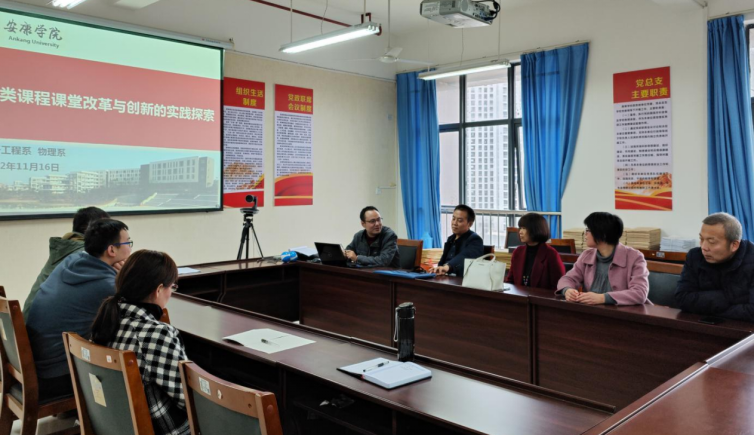 第二阶段,11月16日下午电子工程系、物理系专业教师就参加虚拟教研室活动的内容,结合我校电子信息工程专业现状进行讨论交流。丁礼磊首先介绍了电子信息工程专业课程建设与改革情况,并提出目前电子信息工程专业相关教学成果较少,专业建设和课堂教学改革深度不够等现实问题。然后老师们针对电子信息工程专业课程教学改革中的具体问题进行了深入交流,并针对自己在教学过程中遇到的问题和一些好的经验做法进行了分享交流,老师们积极性很高,活动气氛热烈。丁礼磊希望各位老师适应当前高等教育形势,树立课程改革意识,日积月累,持续改进;将电子社团、学生竞赛和教学改革有机结合,形成联动效应,提高教学改革效果,提升人才培养质量。