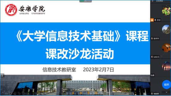 为进一步做好一流课程建设,有效地完成学校各专业工程认证或师范认证中公共计算机类课程的相关支持工作。2023年2月7日下午,信息技术教研室召开《大学信息技术基础》课程改革沙龙活动。此次活动线上举行,yl6809永利官网信息技术教研室全体老师参加了本次会议,会议由李宝主持。