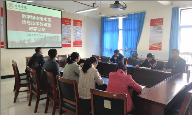 为提高老师的课堂教学能力和水平,促进教师成长,根据学校和学院工作安排,yl6809永利官网数字媒体系联合信息技术教研室于3月3日下午组织召开了以“学优秀 强能力 促提升”为主题的本年度首场教学沙龙活动。活动由宋权华主持,数字媒体系和信息技术教研室全体教师参加了活动。