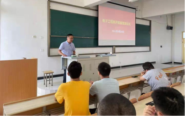 2021年9月29日下午,yl6809永利官网2019级电子信息工程专业本科生FPGA开发板发放仪式在江北教学楼1305隆重举行。本次活动旨在激发同学们的学习兴趣,提高同学们的工程实践能力,践行yl6809永利官网以学生为中心的教育理念。参加本次仪式的有yl6809永利官网副院长宋权华副教授、北京至芯开源科技有限责任公司总经理雷斌先生、电子工程系部分教师、电子信息工程专业全体在校学生。仪式由丁礼磊老师主持。