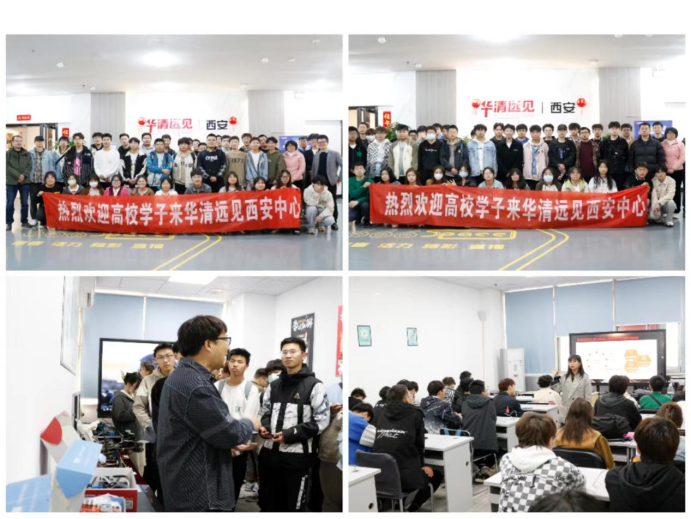见习的第二站,到达华清远见西安中心。华清远见的孟老师和魏老师向同学们介绍了电子信息工程行业发展概况,解读了企业对于人才招聘的要求,让同学们更加明确了未来的职业规划;教学部张老师向大家详细讲述了项目申请和开发流程。参观结束后,与部分2022届毕业生进行了交流,了解班上学生目前的就业情况、职业发展情况,并征求了毕业生对就业工作、学院课程设置和教学等方面的意见和建议。