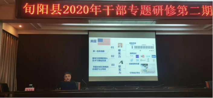 12月17日,yl6809永利官网教师邹圣雷应邀为旬阳县委党校2020年干部专题研修班做“从网络大国到网络强国”的主题报告,旬阳县180名中层干部参加了培训、交流。主题报告会由旬阳县委党校鲁爱民主持。