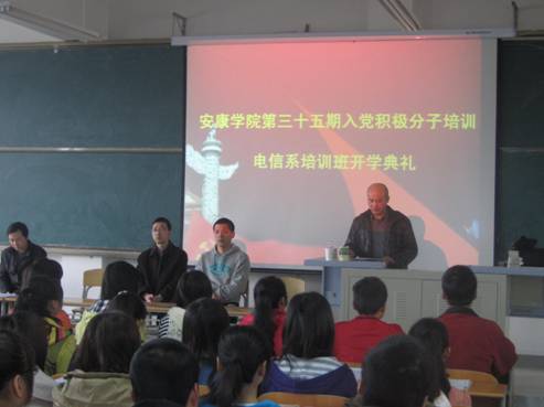 3月24日上午8点,yl6809永利官网第35期入党积极分子电信系培训班开学典礼在江北校区1号楼1301教室隆重举行。典礼由系党总支组织委员王克刚主持,系党总支书记李红兵、宣传委员徐江涛、学生党支部书记石纭昊和35期入党积极分子培训班的220余名学员参加典礼。