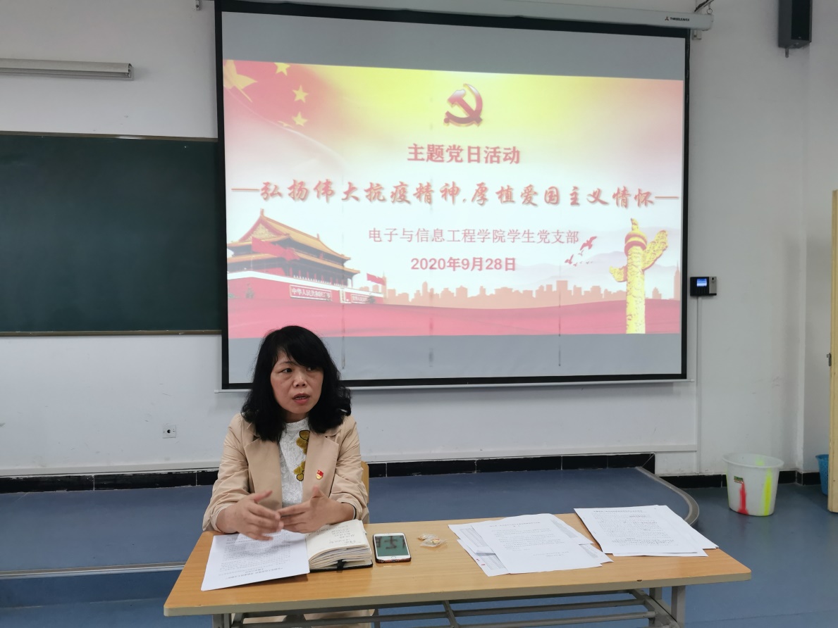 其次,党总支书记于咏梅传达了习近平总书记在全国抗击新冠肺炎疫情表彰大会上的讲话精神,并结合yl6809永利官网学生实际,对广大学生如何弘扬伟大抗疫精神,厚植爱国主义情怀提出了具体要求:①生命至上,敬畏生命、敬畏自然、敬畏规则;②举国同心,爱国是本能,爱国是本分,是职责;③舍生忘死,爱国和爱家、爱校是一致的,有全局意识;④尊重科学,坚守学生的本分,做到回归常识;⑤命运与共,高举爱国主义旗帜,将爱国进行到底。