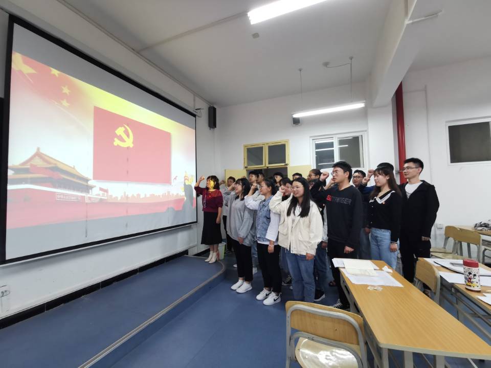 最后,同学们在支部书记成英丽老师的带领下,面对党旗重温了入党誓词。并纷纷表示,党中央的英明领导,筑起最坚强的保障;作为学生党员要以英雄为榜样,传承抗疫精神,在奋斗中书写人生华章,在历练中增长学识才干,只争朝夕、不负韶华,用辛勤和汗水谱写壮丽的青春之歌,用实干和奋斗共同致敬伟大的祖国,拥抱这个光荣而伟大的时代。