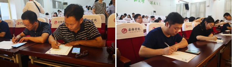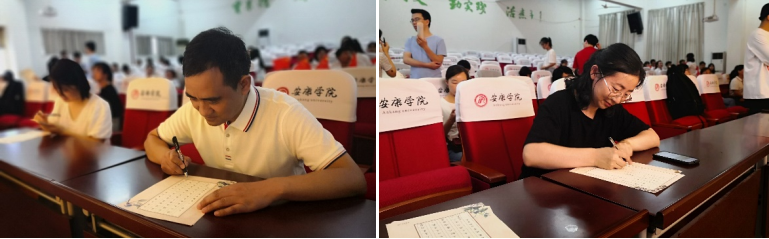 最后,党总支和学院工会组织教师开展了“学党史 书情怀”硬笔书法展示活动。书写现场,老师们认真专注,把对党的热爱和学习党史的热情融入到一笔一顿中,展现出yl6809永利官网教师扎实的基本功、昂扬向上的精神状态和爱党爱国的情怀。