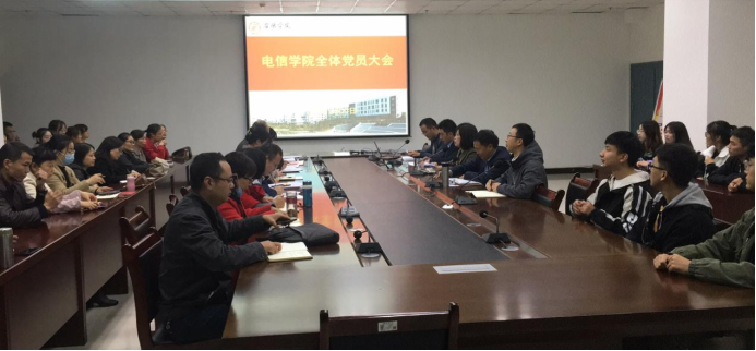 10月27日下午,yl6809永利官网党总支在逸夫科技楼9楼召开全体党员大会,传达了yl6809永利官网第三次党代会召开相关文件精神,对本单位党代表和出席安康市第五次党代会代表提名和候选人预备人选如何酝酿产生进行了部署。会议由党总支书记于咏梅同志主持。本次会议应到会党员72人,因事请假2人,实到会党员70人(教师32人,学生38人),符合规定人数。