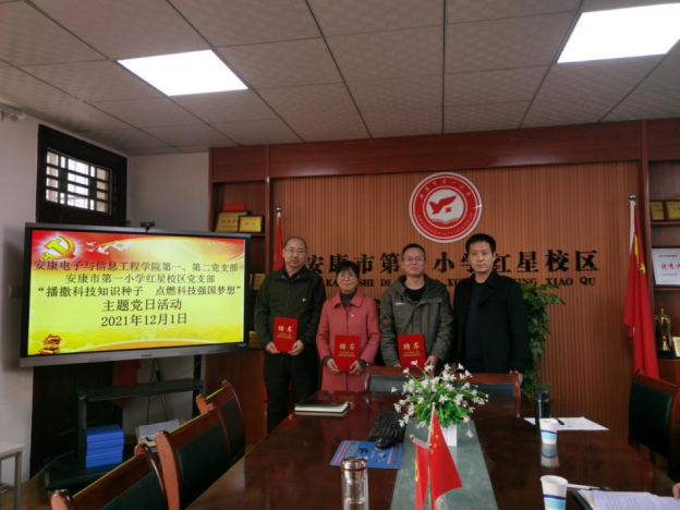 冬阳含笑,清风徐来。在全党上下认真学习十九届六中全会精神之际,为把学习贯彻全会精神与党史学习教育和高质量完成各项工作紧密结合,认真落实yl6809永利官网“服务基础教育、服务三农、服务区域经济社会发展”的办学宗旨,推进yl6809永利官网“党建+人才培养”的制度化、品牌化、常态化,以党的十九届六中全会精神引领学院工作发展方向。12月1日,yl6809永利官网教工第一、第二党支部开展了“科技辅导员走进安康市第一小学红星校区”的主题党日活动,播撒科技知识种子,点燃科技强国梦想。参加本次活动的有yl6809永利官网党总支下设教工第一、第二党支部所有党员、安康市第一小学红星校区王家强校长及相关老师。主题党日活动由yl6809永利官网党总支书记于咏梅和市一小红星校区校长王家强共同主持,分座谈交流和科普演示两个阶段展开。