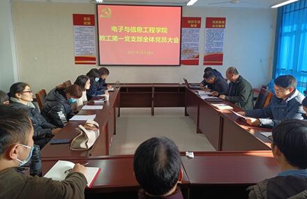 2021年12月29日下午,yl6809永利官网教工第一党支部在逸夫科技楼B702召开党员大会,会议主要讨论宋昌伟、王涛二位同志能否转为中共正式党员的事宜。本次会议应到会党员20人,因事请假2人,实到会18人,符合规定人数,大会由支部书记赵志强主持。