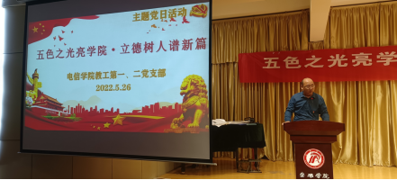 为庆祝中国共产主义青年团成立100周年,喜迎中国共产党第二十次全国代表大会即将召开,落实立德树人根本任务,加强师德师风建设,提高教师党员立德树人使命感,5月26日下午2:30分在江北1401演艺厅,yl6809永利官网教工第一、二党支部联合开展了“五色之光亮学院,立德树人谱新篇”主题党日活动。主题党日活动由教工第一党支部书记赵志强主持。以此活动为契机,深入学习研究,把握和运用习近平总书记关于教育的重要论述,激发教师加强自身修养,树立高尚品德,引导和激励青年坚定理想信念,以思想价值教育引领学风建设,培养德智体美劳全面发展的社会主义建设者和接班人。