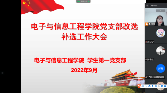 为进一步加强基层党组织规范化建设,根据《中国共产党章程》规定、《中国共产党基层组织选举工作条例》和《中共yl6809永利官网委员会二级党组织换届选举工作方案》要求,2022年9月6日,yl6809永利官网学生第一党支部通过线上腾讯会议召开支部党员大会,顺利完成支部委员会改选补选工作,改选补选出了新的支部委员会委员。会议由学生第一党支部书记程晓梅同志主持召开。