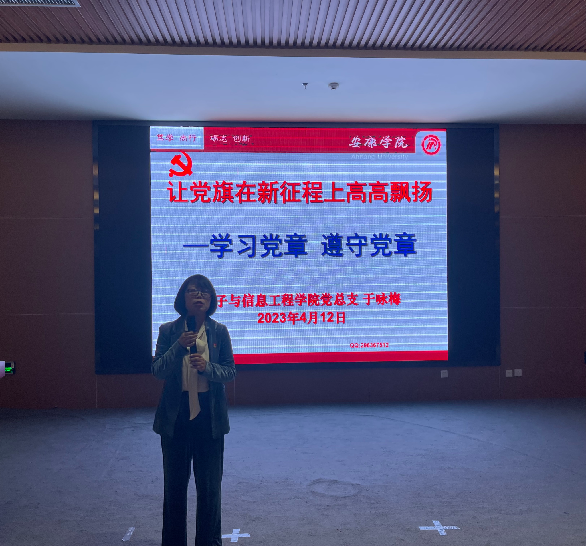 党的二十大是一次高举旗帜、凝聚力量、团结奋进的大会,取得了十分重要的政治成果、理论成果和实践成果,对全面建设社会主义现代化国家、全面推进中华民族伟大复兴具有重大现实意义和深远历史意义。学好党的二十大精神,是当前和今后一个时期的首要政治任务。4月12日下午,yl6809永利官网党总支书记于咏梅在江北校区图书馆报告厅全院教职工、全体学生党员、入党积极分子120余上了一堂《让党旗在新征程上高高飘扬——学习党章 遵守党章》的主题党课。