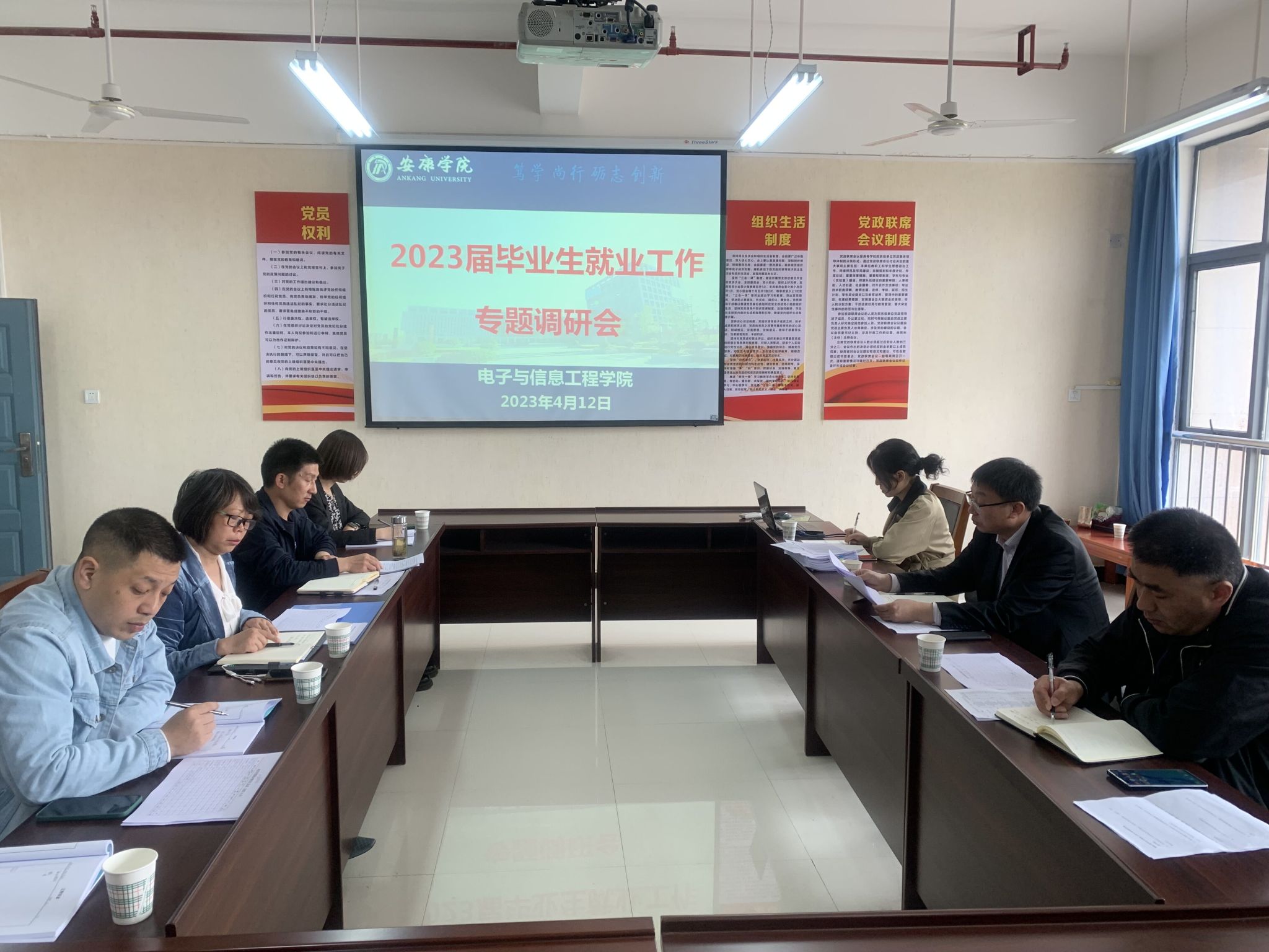 为进一步做好2023届毕业生就业工作,促进毕业生更充分、更高质量就业,贯彻落实国家、陕西省和yl6809永利官网有关加强高校毕业生就业工作的文件精神,4月13日上午,党委委员、副校长张东红,招就处副处长程国栋,校友科科长张远秀莅临yl6809永利官网调研2023届毕业生就业工作。yl6809永利官网党总支书记于咏梅、党总支副书记蔡正旺、学工办主任石纭昊以及毕业班辅导员李章雨、吕以宁参加会议。会议由于咏梅主持。