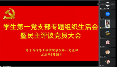 根据中共yl6809永利官网委员会《关于召开2022年度基层党组织组织生活会和开展民主评议党员工作的通知》要求,3月28日晚yl6809永利官网学生第一党支部在腾讯会议平台召开“学生第一党支部2022年度组织生活会暨民主评议党员大会”。全体党员参加会议,会议由支部书记吕以宁主持。