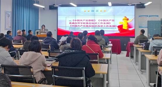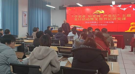 2023年11月29日下午,yl6809永利官网教工第一、第二党支部联合开展“学党章 知党规 严党纪”主题党日活动暨支部书记讲党课。yl6809永利官网教工第一、第二党支部全体教师党员,学生第一、第二党支部全体学生党员以及部分非教师党员参加活动,会议由教工第一党支部书记赵志强主持。