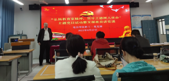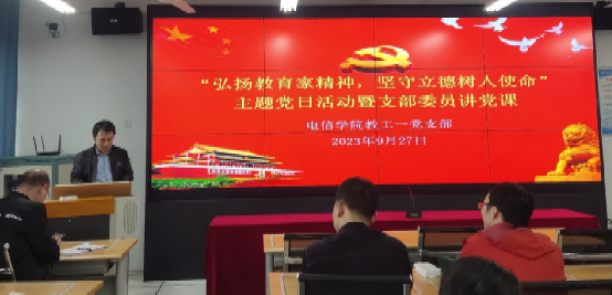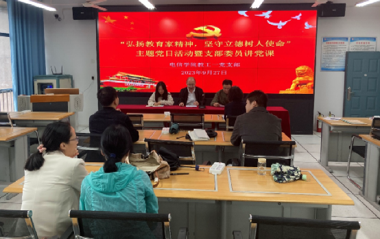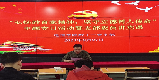 2023年9月27日下午,yl6809永利官网教工第一党支部开展“弘扬教育家精神,坚守立德树人使命”主题党日活动暨支部委员讲党课。活动由教工第一党支部书记赵志强主持,支部全体党员参加本次活动。