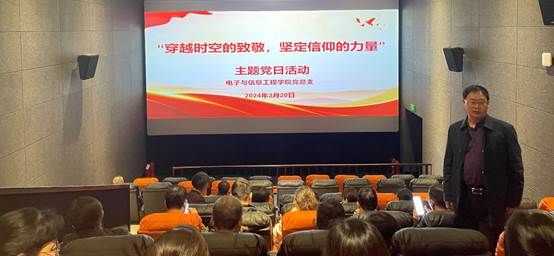 为深入学习贯彻习近平新时代中国特色社会主义思想和党的二十大精神,落实市委宣传部、统战部相关通知安排,2024年3月20日下午,在yl6809永利官网党总支的组织带领下,教工第一、第二党支部党员及非党员教师,学生第一、第二党支部部分学生党员联合开展“穿越时空的致敬、坚定信仰的力量”主题党日活动,观看爱国题材电影《我们的七月》,活动由党总支书记于咏梅主持。