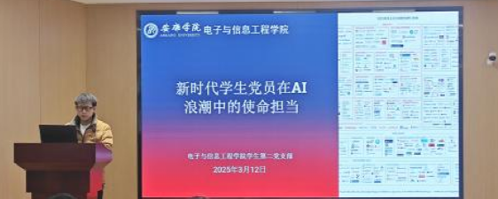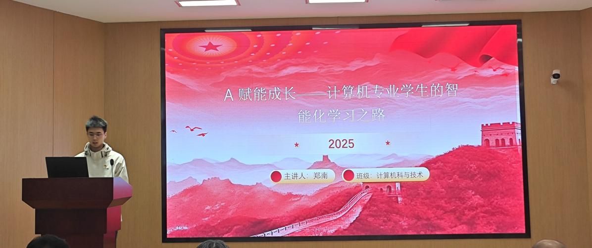 学生第二党支部书记贾金兵立足2025年全国两会“人工智能+”战略部署,通过“智慧农业”“数字政务”等应用场景,号召青年学生“做红色科技的传播者与实践者”,在专业领域探索AI赋能新路径,助力乡村振兴与产业升级。