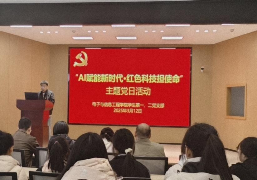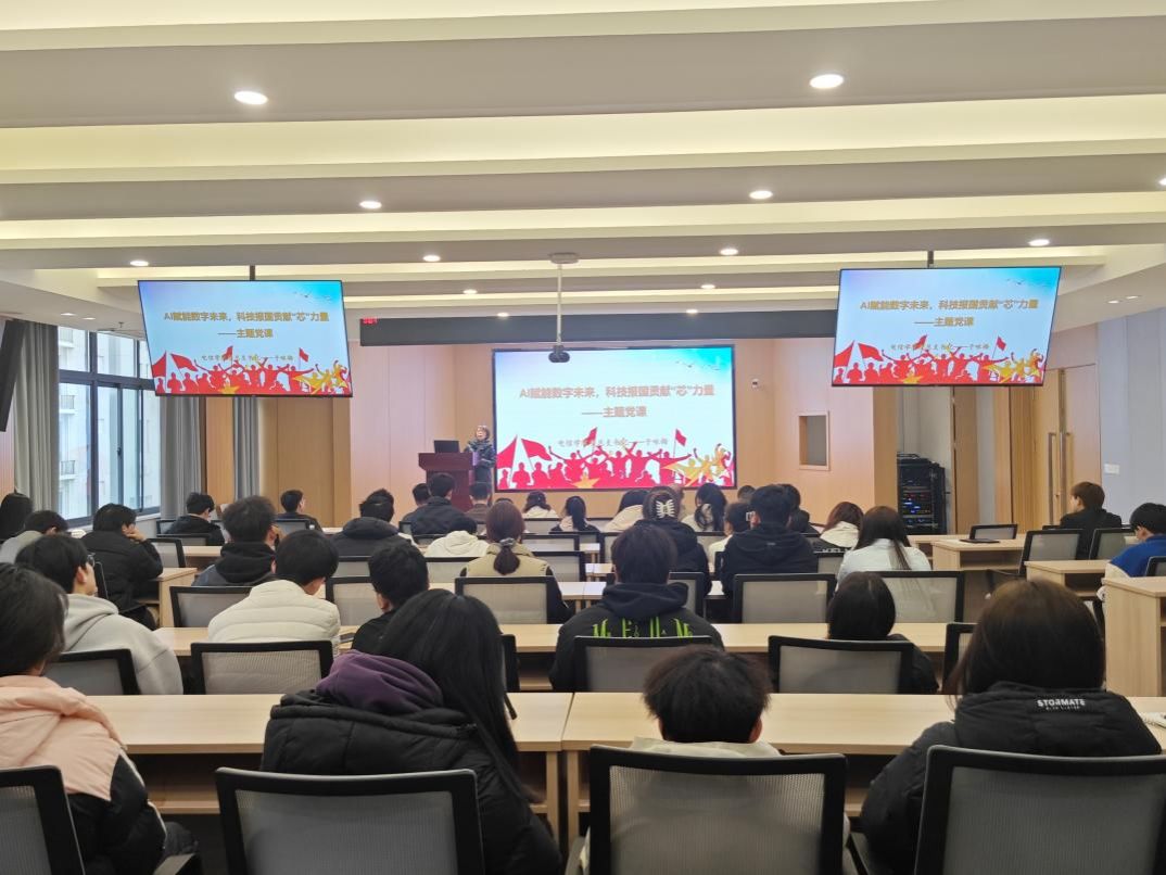 为深入学习贯彻2025年全国两会精神,推动人工智能技术与党建工作深度融合。2025年3月12日下午,yl6809永利官网学生第一、二党支部在江北校区乡村振兴学院多功能报告厅联合开展“AI赋能新时代,红色科技担使命”主题党日活动。yl6809永利官网党总支书记于咏梅、教工第一党支部书记赵志强、学生第一、二党支部全体成员、入党积极分子参加。本次活动由学生第一党支部书记翟子轩主持。