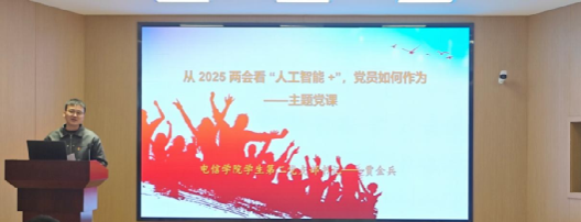 最后,yl6809永利官网党总支书记于咏梅为与会人员讲了一堂生动的微党课。她结合党的二十大报告、2025年全国两会以及政府工作报告详细讲解了AI技术对于国家发展的战略意义,号召电信学子勇担“科技报国”的重任,并且提出五点希望:一是筑梦科技潮头,立志报国铸魂;二是深耕专业知识,锤炼强国本领;三是勇攀科技高峰,探索创新之路;四是聚焦社会需求,科技惠及民生;五是彰显党员风采,贡献青春力量。