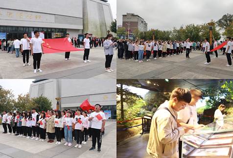本次活动由团总支办公室部长方芝晶主持。活动开始,全体师生齐唱国歌,面向国旗行注目礼,全程气氛庄严肃穆。接下来由优秀团员代表2017级应用物理1班马莉进行国旗下演讲,她明确了青年应有信心和能力去实现中华民族伟大复兴的目标,不能骄傲自满、松懈松劲。演讲结束后,由团总支副书记赵航带领全体师生重温入团誓词。“……遵守团的章程,执行团的决议,履行团员义务,严守团的纪律……”每一句誓词都是青年的责任所在。其后,由学生党支部书记成英丽给全体团员讲了《不忘入团初心》的团课,鼓励广大青年学子敢于争先,勇立时代潮头,为中华民族的伟大复兴而积极努力。最后,全体师生合唱了《中国共产主义青年团团歌》、《歌唱祖国》。活动结束后,大家在安康市博物馆前进行合照留念并进馆参观。