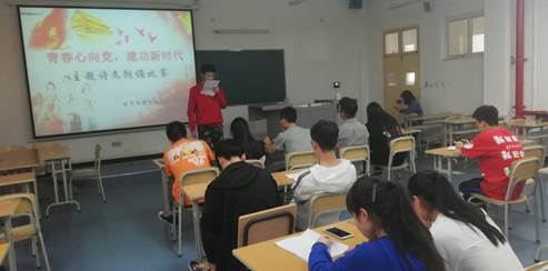 为庆祝中华人民共和国成立70周年、五四运动100周年,激发青年团员的爱国热情,yl6809永利官网团总支于2019年4月14日在1311教室组织了以“青春心向党·建功新时代”为主题的诗文朗诵比赛活动。