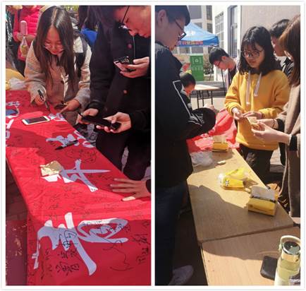 中午11点30分,在团总支副书记颜一帆的带领下,团总支各部门各行其责,有秩序的为参与活动的同学们讲解活动内容,动员大家在横幅上签字并领取绿植种子。通过yl6809永利官网全体团总支成员的不懈努力,在全校师生的积极响应下,植树节活动顺利完成。