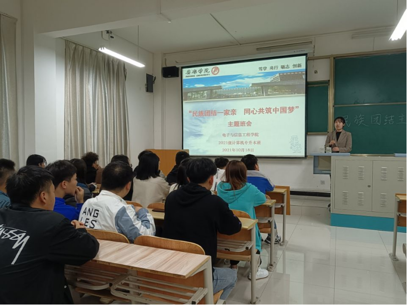 为弘扬和培育民族精神,促进民族团结,激发学生的爱国热情,增强班集体的凝聚力,2021级计算机科学与技术专升本1班于10月18日下午19:30,在江北校区1116教室开展了“民族团结一家亲,同心共筑中国梦”的主题班会,辅导员李章雨老师参与班会,会议由班长龙明珠、团支书周欣儿共同主持。