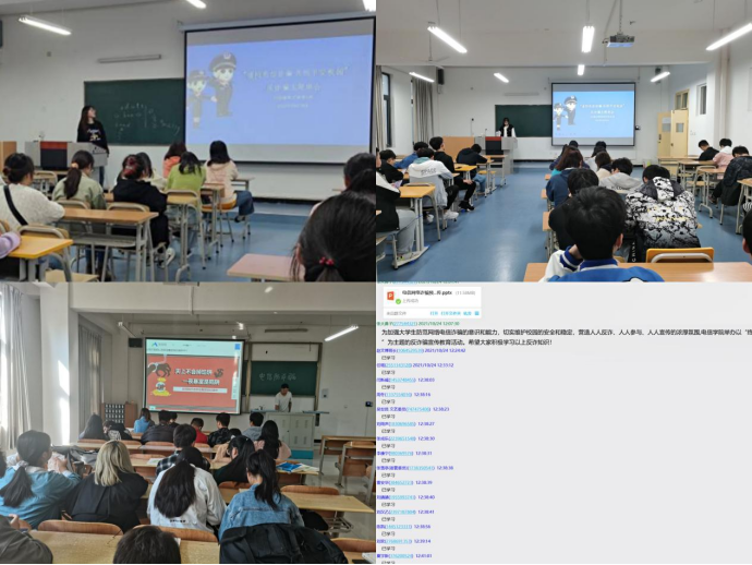 随着通讯科技设备的普及,电信诈骗事件层出不穷,为有效遏制电信网络诈骗犯罪发生,形成坚实的校园防范基石,切实杜绝受害1024日,yl6809永利官网组织各班开展防范电信诈骗、保障财产安全系列主题班会。学工办主任石纭昊、辅导员成英丽、李章雨、程晓梅、张宇航分别参与所带班级会议,各班会议本班团支书主持。