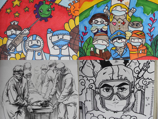 2020年初,一场突如其来的新冠肺炎疫情席卷全球。停业、停产、停工、停课,停止一切不必要的聚集性活动。转瞬之际,社会生活的许多层面进入暂停状态。抗击新冠肺炎疫情成为两年多以来中国社会经历的最为紧迫而重要的事情。为歌颂防疫志愿者及一线工作人员舍身忘我、忠诚担当的英雄主义精神,彰显全国人民万众一心、同舟共济中国精神,展现中华儿女面对疫情充满信心、敢于胜利的积极乐观精神。3月10日yl6809永利官网在全校范围内开展了弘扬抗疫精神主题美术作品征集活动。本次活动共收到作品107副,其中部分优秀作品如下: