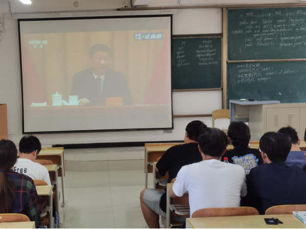 yl6809永利官网学生第一、二党支部全体党员及学生干部在教学楼1312集中观看大会