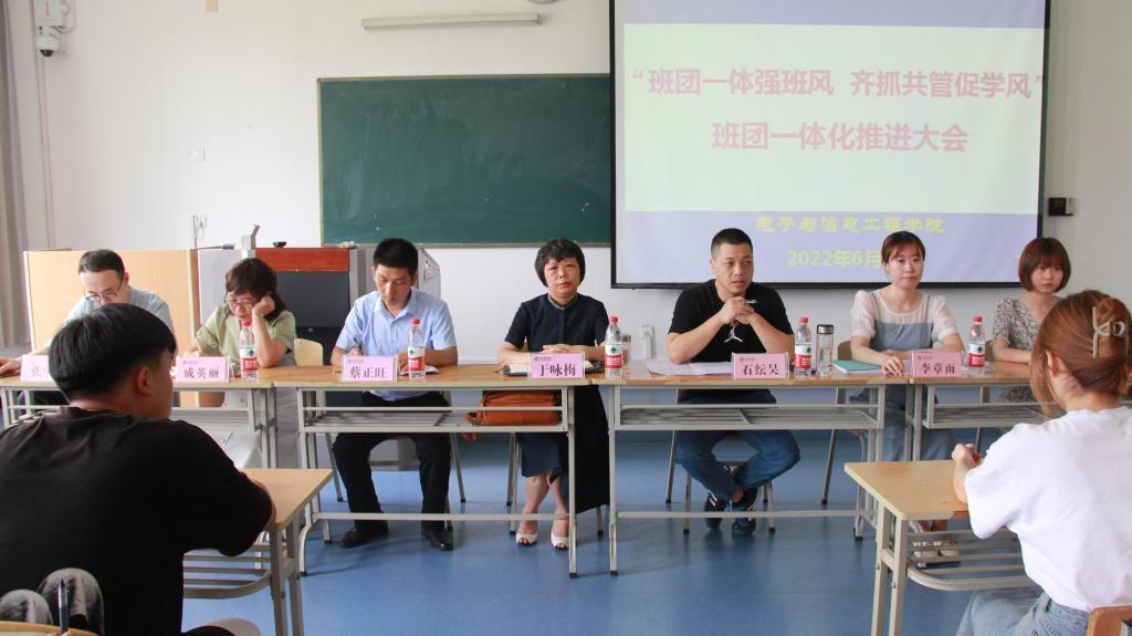 为持续推进团支部、班委会一体化机制建设,充分发挥班团组织育人功能,切实将“五色”育人实践教育活动落到实处,6月8日下午2:30yl6809永利官网在1320教室召开以“班团一体强班风 齐抓共管促学风”为主题的学生干部大会,推进班团一体化工作。yl6809永利官网党总支书记于咏梅,副书记蔡正旺,学工办主任石纭昊,团总支书记张宇航,辅导员成英丽、李章雨、吕以宁出席会议,yl6809永利官网团总支副书记,学生会主席团成员,2020级、2021级各班班长、团支书、副班长共计50余人参加会议,会议由石纭昊主持。
