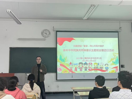 铸牢中华民族共同体意识主题班会暨团日活动。yl6809永利官网团总支书记张宇航、少数民族学生代表及2022级计算机科学与技术1班全体同学参加此次会议。