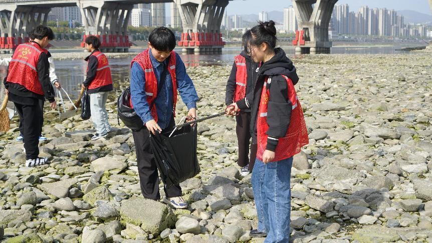 志愿者们集合在汉江河畔,他们身着统一的服装,手持清洁工具,准备开始今天的清扫任务。在学院团总支的精心组织和带领下,志愿者们分工合作,有序地展开了清扫工作。他们沿着汉江河畔,认真仔细地捡拾着岸边的垃圾,包括塑料袋、烟蒂、废弃瓶罐等。尽管垃圾种类繁多,但志愿者们没有丝毫怨言,他们默默地付出着,用实际行动守护着汉江的清洁。
