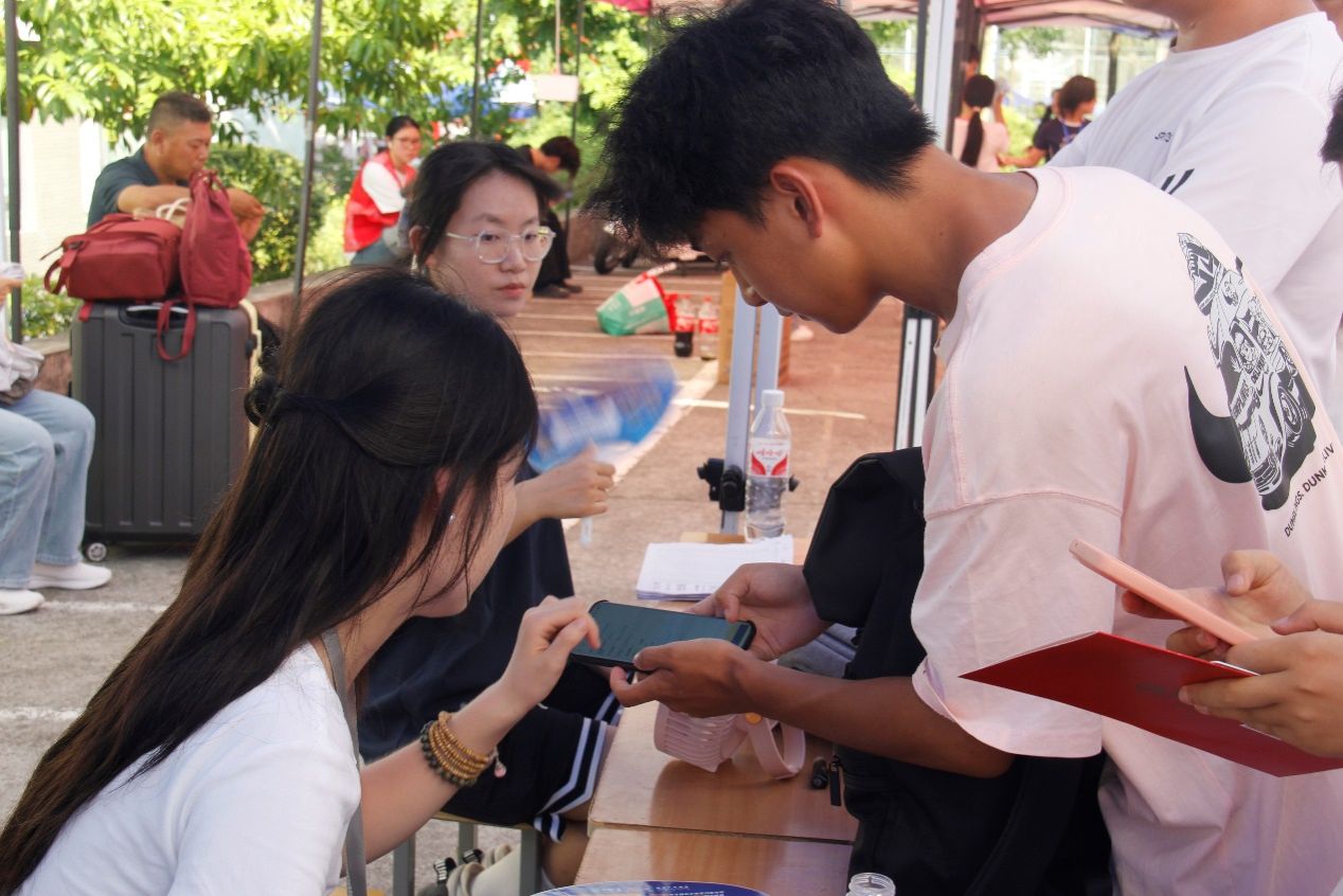 通力合作、有条不紊。醒目的横幅高悬、欢迎的标语绚丽,学院师生在为期两天半的迎新工作中,每个人脸上洋溢着幸福的笑容。团总支、学生会、社团服务中心及志愿者服务队的学生们,身着志愿者马甲,帮助新生们完成签到注册、领取校园卡等报到手续。随后,他们帮助同学和家长运送行李到宿舍,引导同学们前往宿管处办理入住手续并领取宿舍钥匙。他们坚守在迎新工作一线,不畏炎阳,不惧劳累,以高度的责任心和积极的工作态度,细致入微地完成了各项服务工作。