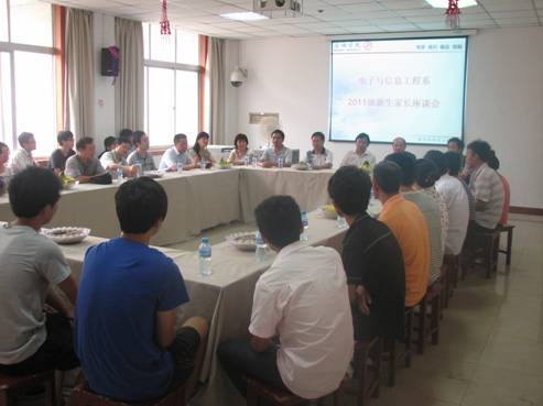 94号下午,电子与信息工程系在1429召开新生家长座谈会,电信系系领导、两办主任、教研室主任、辅导员、教学秘书和部分新生家长及新生代表参加了会议。会议由系总支书记李红兵主持。