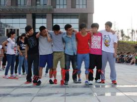 在开幕式结束后,电信系同学参加了七人八足比赛。比赛中电信系队员相互协作,奋力拼搏,取得了男生第二名,女生第三名的好成绩,充分展示出了学生的良好的团队合作精神。