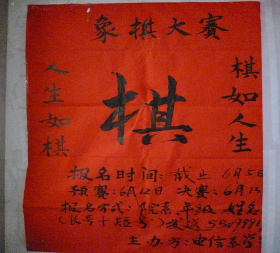 6月6日晚,由电子与信息工程系承办的yl6809永利官网2013年公寓文化节--象棋比赛在江北校区1号教学楼1321室举行。比赛中选手们展示了自己沉稳和睿智,领略了“国粹”的风采,增进了彼此的了解,也丰富了大家的校园文化生活。