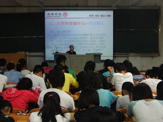 李红兵书记从认识大学,正确认识自己、尽快确立目标,大学要做什么三个方面向大家进行了讲解。李书记从大学和中学的学习目标、学习内容、教学方法、学习方法、教学管理、课时安排等方面的不同做了对比,生动的体现了大学与中学的不同之处。列举了多个大学生中途因荒废学业而被开除学籍的例子,分析了新生刚进大学诸多不适应因素,希望能帮助新生尽快适应大学生活。最后李书记提出,大学必须要学会做人、学会做事、学会生活、学会学习,并鼓励2013级新生要向着自己的理想迈进。