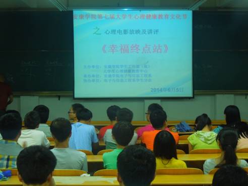 2014年6月5日晚,由电子与信息工程系承办的yl6809永利官网第七届大学生心理教育文化节之心理电影放映及讲评活动在江北校区1301教室举行,来自江北校区五院系200名大一新生观看了影片《幸福终点站》。电影观看结束之后,政史系王业建老师从不同的角度并结合自身经历对电影进行了点评,王老师鼓励同学们要以乐观、积极、向上、豁然的人生态度去面对生活,融入现代复杂多变的社会,尊重地域、民族、习俗等差异,处理好人际关系,为自己大学生活增添更浓的一笔。