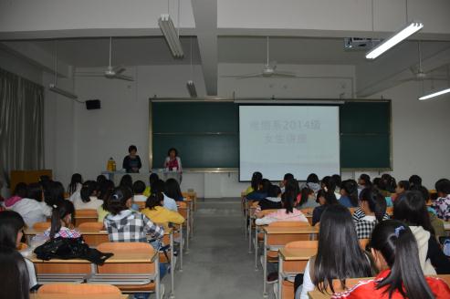 10月9日晚7:30,在江北校区1304教室,电子信息工程系特邀学生处车静老师对2014级女生进行了一场以“自尊自爱、健康成长”为主题的教育讲座。